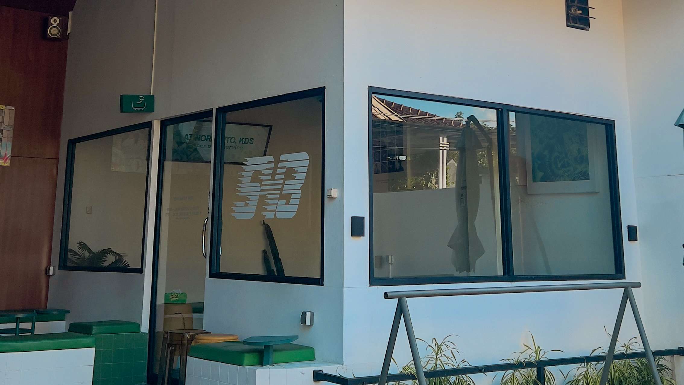 Clean look dengan sentuhan retro. Menghubungkan antara arsitektur modern dan rimbun hijau yang menyelinap lewat pantulan kaca.