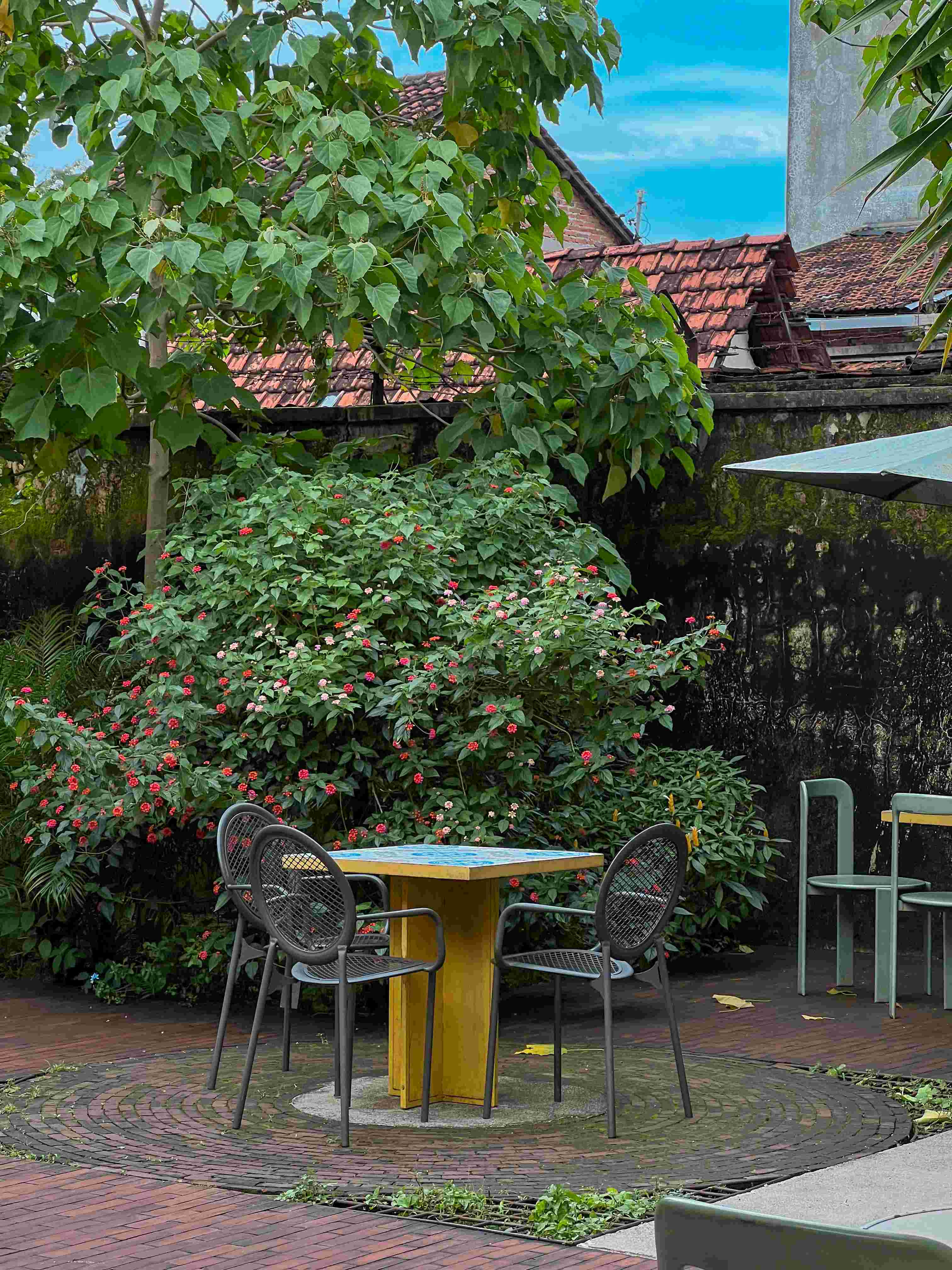 Layout yang dinamis dengan pilihan seating yang beragam, calming outdoor